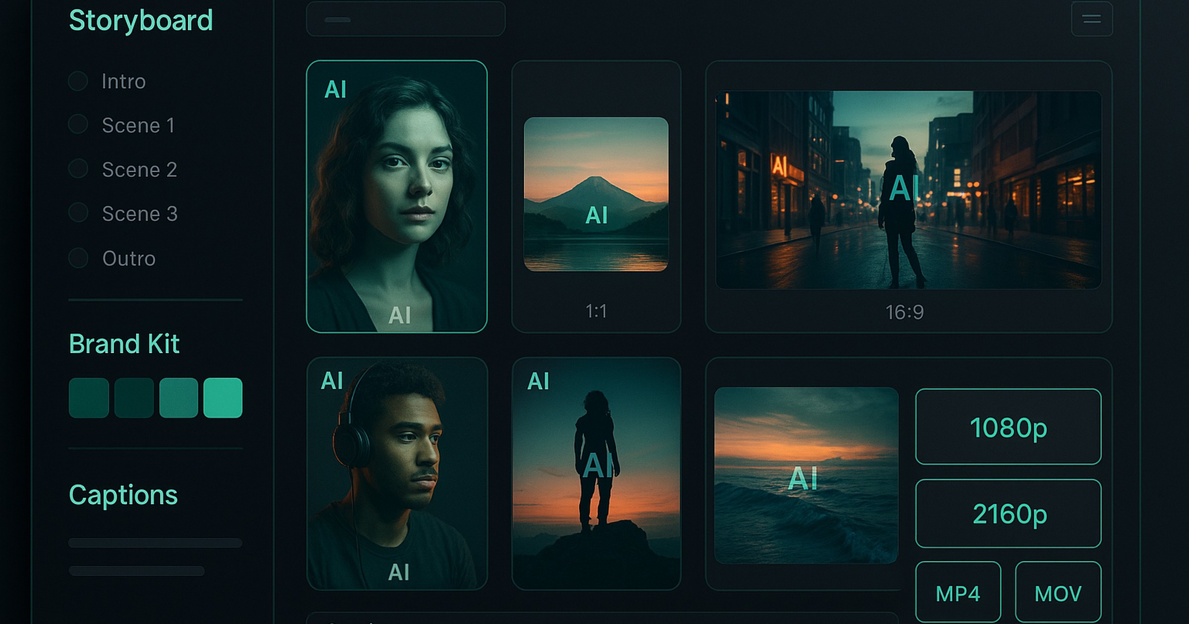 Build once, ship variants at scale. Storyboards, prompts, brand kits and export profiles in one place — with visible watermarks and C2PA credentials for platform-safe publishing.